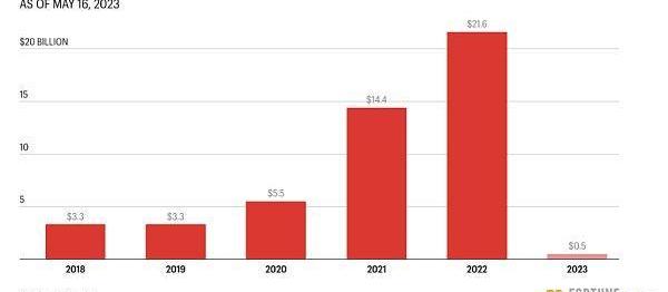 加密貨幣在2022年暴跌,但加密風投仍然設法吸引了創紀錄的216億美元新資金。雖然ETH和BTC等資產在2023年呈大幅復蘇趨勢,但風投們今年并沒有從投資者那里看到多少進一步投資該行業的興趣。簡而言之,今年到目前為止,融資額直線下降,比去年下降了98%。