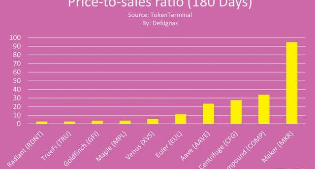 下圖是基于180天累計利息費用的價格-銷售比率,我們發現除了CFG和Maker之外,RWA借貸協議比純加密貨幣借貸協議更便宜。