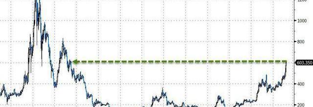 自2018年5月以來,ETH價格首次突破500美元,突破了兩年的區間。此后已經升至580美元以上,顯示出強勁的勢頭,620美元以上的阻力很小。