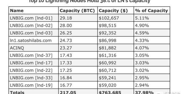 當然,閃電網絡的節點可能也存在一些其他問題,其中比較明顯的就是節點顯得較為“中心化”。按照區塊鏈分析公司Diar的分析,此前閃電網絡內最大的十個節點的交易量占到了整個網絡交易量的53%。不過這種情況在今年年初已經得到了較大改善,如今閃電網絡內最大的20個節點的交易量“僅”占到整個網絡交易量的38%——但不可否認,閃電網絡對大節點的依賴現象依然比較突出。
