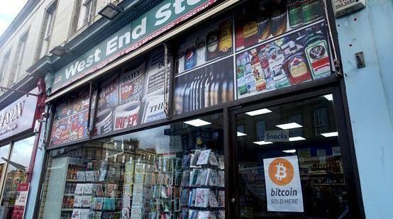 “這里出售比特幣。”在英國愛丁堡市中心的西恩德雜貨店門口,貼著一張A3打印紙大小的告示,上面是比特幣的標志。