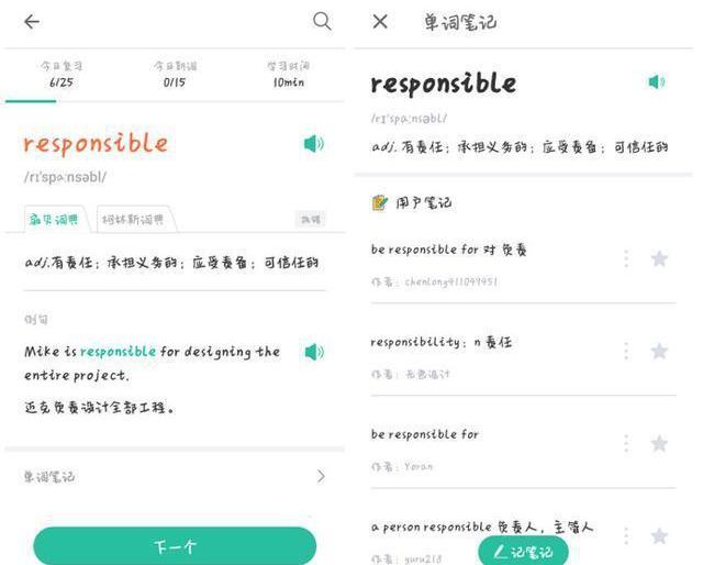 今日計劃完成之后主界面會由開始學習的按鈕變為打卡和再來25的兩個按鈕,這一點會給用戶學習完成今日任務之后的一種愉悅感。