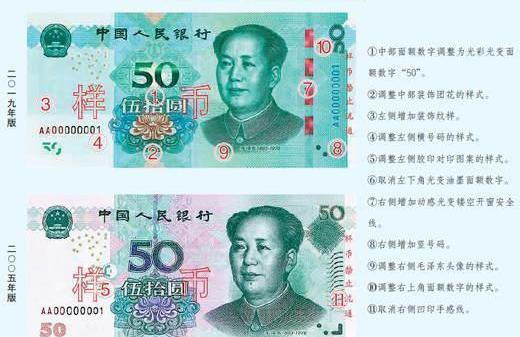 不僅有加法,此次新版人民幣的防偽技術也做了一些減法。比如50元、20元、10元紙幣取消全息磁性開窗安全線和凹印手感線,50元紙幣取消光變油墨面額數字。而1元紙幣則增加了磁性全埋安全線和白水印。總體看,新版人民幣應用的防偽技術更加先進,布局更加合理,整體防偽能力較現行紙幣有明顯提升。