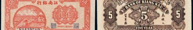 中國紙幣拍賣榜第28名民國三十四年江南銀行紙幣伍圓一枚