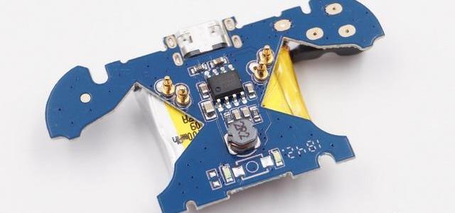 電路板正面是充電頂針,電源管理芯片,電感和指示燈。