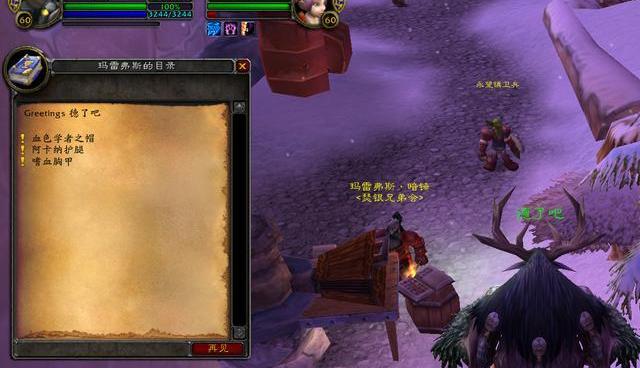 7.“血色學者之帽”任務,要求玩家提供×1,×5,×8,×5,再支付50個金幣,即可得到布甲頭件,由于裝備的職業限制,建議布甲職業和小德、薩滿去接。