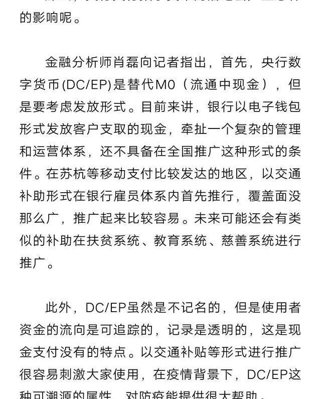 記住這一點:央行數字貨幣替代M0,其功能和屬性與紙幣相似,只不過形態是數字化的。