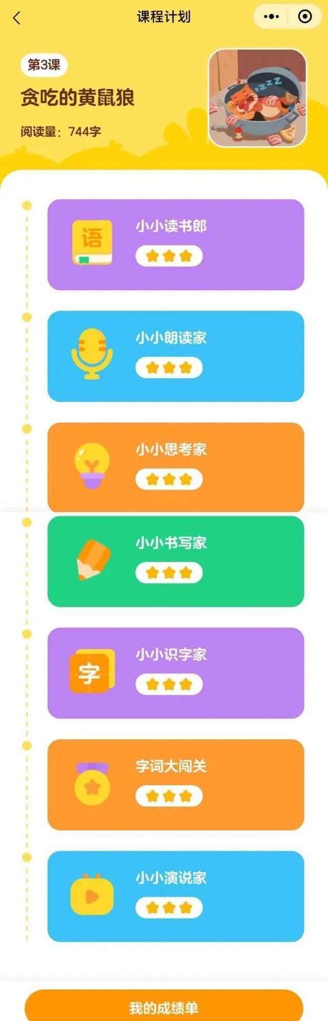 我點開了其中的一個閱讀里系統課,發現了課程目錄是這樣子的,硬是要將很多繪本和文學作品,拆分成很多功能點,早期閱讀的快樂瞬間就沒有了的感覺。
