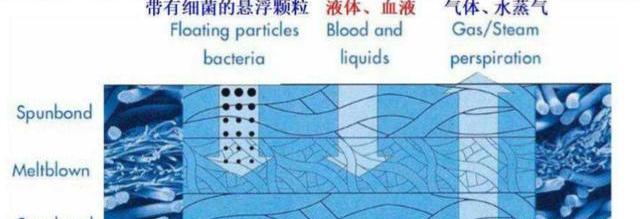 三層材料的功能可以概括為:外層防飛沫,中層過濾,內層吸濕。