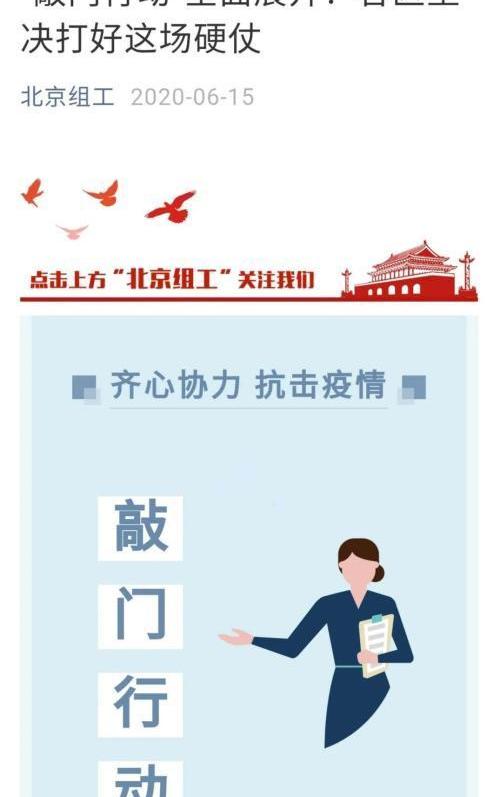 據北京組織部微信公眾號6月15日消息,針對近日出現的疫情防控新情況,北京各區第一時間開展“敲門行動”,“地毯式”排查有關人員。目前,門頭溝區即時進入戰時狀態,通過開展“敲門行動”對14日內去過新發地人員進行“地毯式”全面排查。大興區迅速進入緊急狀態,啟動“戰時”機制,完善工作措施,扎實開展新一輪“敲門行動”,對5月30日以來與新發地市場有密切接觸的人員開展大排查。