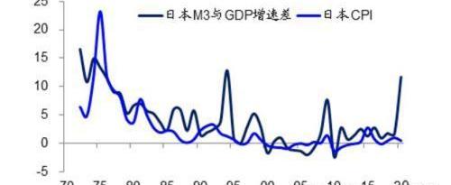 在70年代的日本,廣義貨幣M3的增速超出GDP實際增速10%以上,而70年代日本的平均通脹率也接近10%。但在1980年代之后,日本的通脹率顯著回落,貨幣超發也不再體現為通脹的上行。