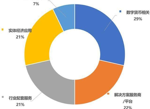 場景上,與數字貨幣相關的行業應用依然比較多,占比29%;其余項目的應用分布在實體經濟應用、行業配套服務、解決方案提供商/平臺等方面。
