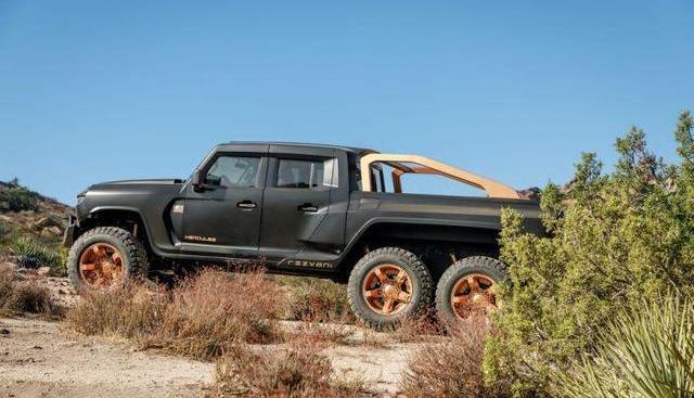 Hercules6x6受到軍車的啟發,看上去就像蝙蝠俠所駕駛的皮卡。