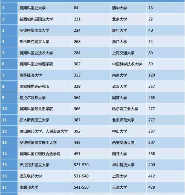 首先我們把俄羅斯排名前15的學校按照學費高的學校和學費低的學校做一個分類。如果你還不了解哪些學校是俄羅斯排名15的學校,可以看下面表格