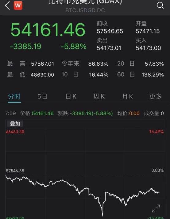 重金投資比特幣的特斯拉大跌8.55%,市值蒸發630億美元,約合4071億人民幣,此前比特幣一度大跌15%,跌破48000美元/枚關口。