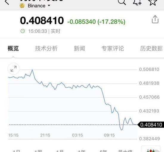 同日,“狗狗幣”價格也大幅跳水,失守0.4美元/枚,日內一度跌幅擴大至20%。