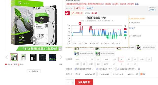 當然,我們一般消費者也用不到如此大容量的機械硬盤。現在,讓我們稍微將目光投向消費者級的普通機械硬盤,可以看到希捷酷魚3TB機械硬盤的價格走勢非常穩定,盡管因為促銷的原因起起落落,但是售價基本能夠穩定在469-509的區間里面,沒有出現漲價的情況。