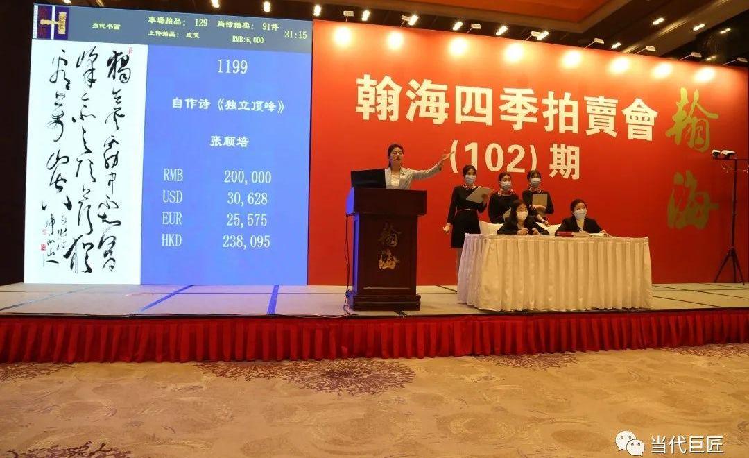2021年4月17日,北京翰海四季拍賣會,筆墨橫姿——中國書畫當代專場在北京千禧大酒店舉行,張順培老師的書法作品自作詩《獨立頂峰》引人注目,自作詩《獨立頂峰》成交價23萬元人民幣。