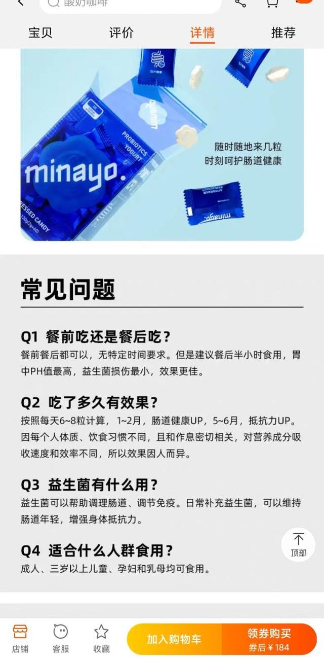 在BUFFXSLEEP產品的“問大家”區,多位曾經購買過的消費者表示“我吃著沒用”、“就是糖而已”。這種情況同樣出現在了Minayo的多維軟糖的“問大家”區,一位用戶問到“推薦購買嗎?效果怎么樣?”而另一位已經購買過的消費者則直接回復稱“就是零食糖”。