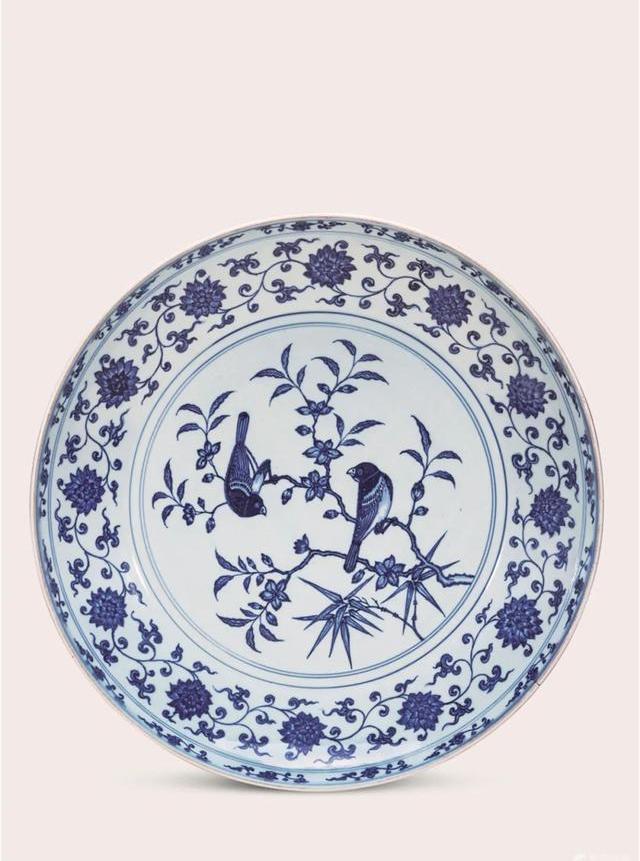 來源:香港蘇富比2013年春拍lot3146清道光青花祥云雙鳳圖盤。