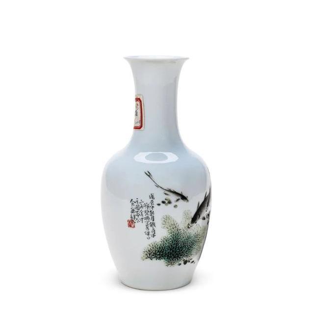 Lot4171民國鄧碧珊粉彩魚藻紋紙槌瓶