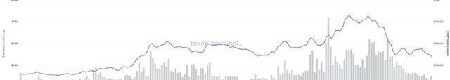從圖上可以較為直觀的看出AAVE的交易活躍度要大于COMP,但是看每日平均交易量來說,AAVE和COMP相差不多。如果根據NVT模型來看,幣價和交易量相關,AAVE的價值應該和COMP價值差不多。但是目前來看AAVE價格COMP低了20%。所以一定程度上而言AAVE被低估了。
