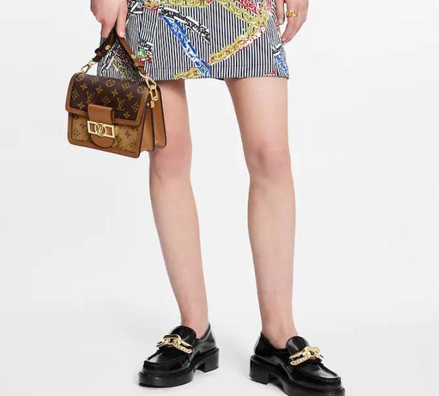 LV這一季的樂福鞋以大氣簡約的風格為主,Acedamy樂福鞋上飾有金色的鏈條裝飾,厚底的設計是妥妥的顯腿細“神器”。