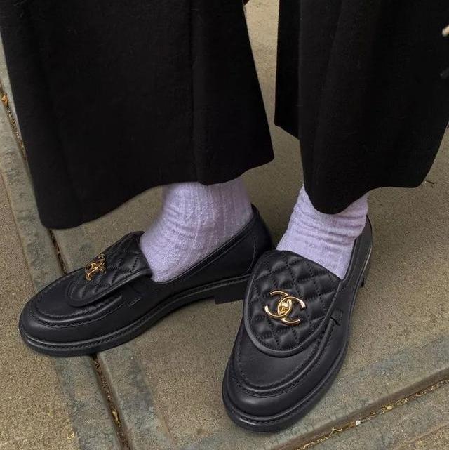 某書上這雙CHANEL雙書包扣樂福鞋風很大,復古中帶著俏皮。上腳多了幾分古典時髦的學生感,很適合搭配學院風單品,和簡約優雅的小黑裙或者斜紋軟呢套裝也很搭。