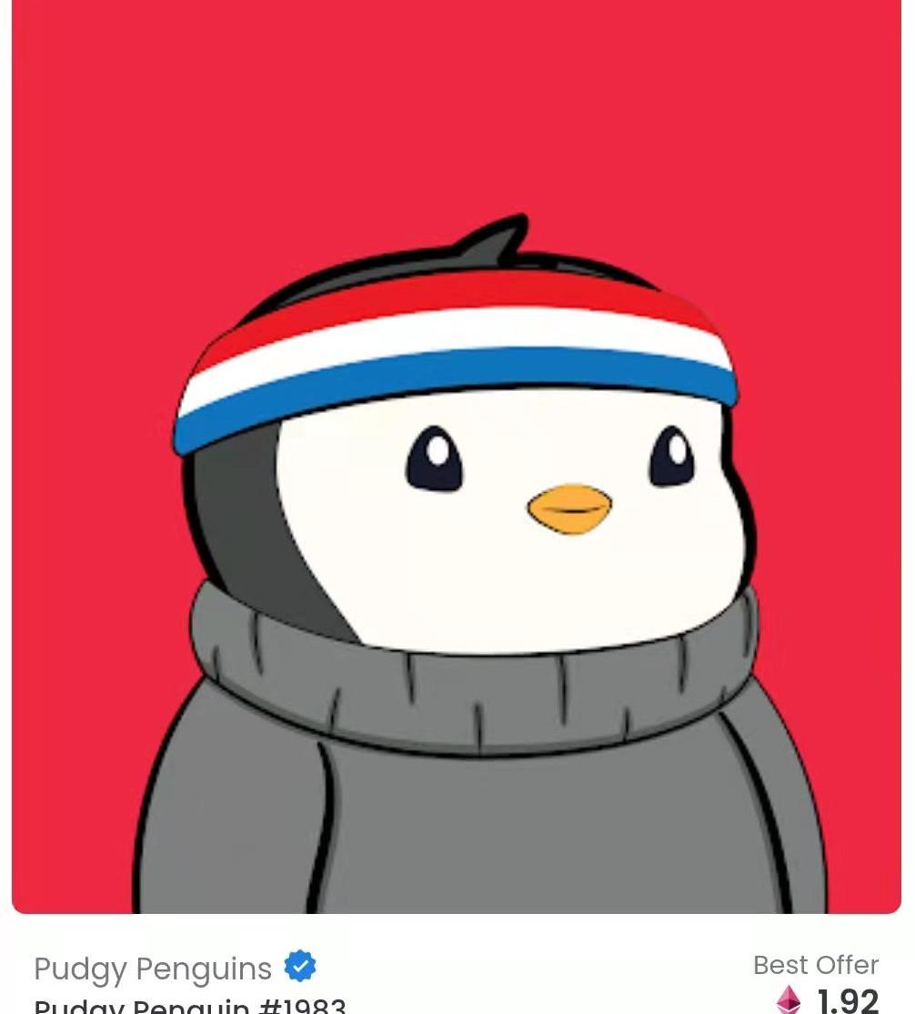 AlexisOhanian在8月10日、11日連續購買了3只“胖企鵝”,其中購入價格最高的是PudgyPenguin#1983,企鵝頭戴發帶,身著毛衣。可見,他偏愛戴發帶的NFT角色。