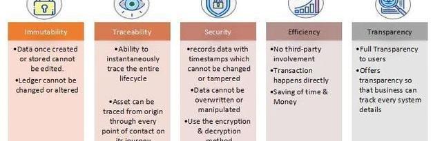 不變性——幾乎不可能在不被發現的情況下對區塊鏈進行更改,從而增加對其攜帶的信息的信心并減少欺詐的機會。數據一旦創建和存儲,就不能被編輯或刪除,即不能更改或更改分類帳。透明度–所有參與者都可以看到交易,在多個計算機系統上維護相同的副本,這增加了審計和信任信息的能力。此外,它可以跟蹤每個系統細節。安全性-它使用加密和解密方法。使用時間戳記錄的數據無法篡改或更改。此外,一旦數據被存儲,就不能被覆蓋或操縱。由于多個參與者共享一個區塊鏈,因此它沒有單點故障,并且在面臨中斷或攻擊時具有彈性。效率–由于沒有第三方參與,交易直接發生,從而節省時間和金錢。近乎實時——記錄交易的結算幾乎是即時發生的,消除分歧并降低風險。