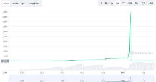 美東時間11月1日9時35分,魷魚幣在短線暴漲突破2850美元后,在短短幾分鐘內突然暴跌至近乎歸零。有投資者表示:“買進就開始跌,來不及反應,直接跌到幾分錢。”