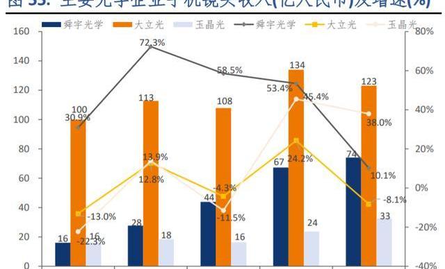 行業利潤顯著向頭部廠商集中,產品應用橫向拓展趨勢增強。頭部廠商通過技術及產能規模建立高壁壘,行業利潤顯著向頭部廠商集中。2020年行業龍頭大立光毛利率和凈利率分別高達67.0%及43.9%,玉晶光及舜宇光學光學零件板塊毛利率亦分別達到43.5%及42.8%;其他中小廠商如Kolen、世高光2020年毛利率僅為-55.8%及7.5%,且均處于凈虧損狀態。龍頭廠商通過自身技術及經驗儲備掌握鏡頭制造中的know-how,產品結構及應用領域拓寬至平板電腦、汽車、VR等領域。大立光產品應用領域已擴展至平板電腦、穿戴裝置、空拍機等,于2021年投資成立車載鏡頭子公司進入汽車領域;舜宇光學產品領域亦延伸至安防監控鏡頭、顯微鏡頭及VR領域。