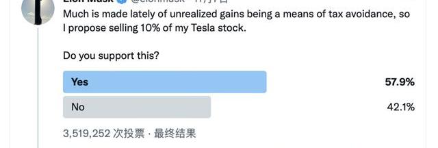 其中有57.9%,也就是200多萬人都支持他賣出特斯拉10%股票,于是他就瘋狂套現:“這可都是網友投票讓我賣的股票啊!不怪我。”