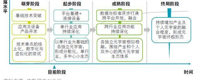 l從發展深度和廣度來看,真正意義上的元宇宙出現大概需要經歷三個階段,“單打獨斗”——“組團作戰”——“高度聚合“