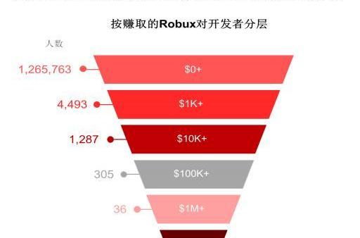 截至2020年底,已有超過1250位開發者通過虛擬幣賺取了1萬美元以上的收入,有超過300位開發者賺取了10萬美元以上的收入。并非所有開發者都會將Robux換成現實貨幣,許多開發者也會選擇將Robux重新投入到開發者工具中增強游戲體驗,或者其他游戲中。