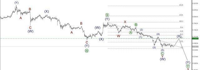 XRPUSD市場繼續將動作波發展為看跌的雙鋸齒形--。波浪是大型三重鋸齒形的一部分。將動作波構建為看跌的雙之字形W-X-Y已經結束。因此,很快,價格有望在連接波內向上移動。市場的增長將繼續保持在0.690的水平,此時波浪將達到波浪的38.2%的斐波那契水平。
