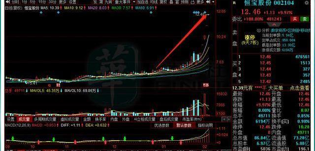 從近期表現看,恒寶股份漲勢兇猛。2月10日,各路資金蜂擁入市,恒寶股份獲超47萬手大單牢牢封死漲停板,最終收報12.46元/股。該股于近9個交易日內共計斬獲7個漲停板,頗有趕超最強龍頭之勢;2月11日,恒寶股份早盤繼續封住漲停。
