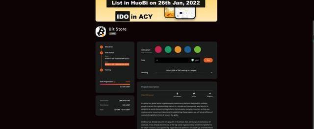 Bit.Store已在近日獲得區塊鏈基礎設施聯盟(BIA)的首個5000萬美元生態系統基金的投資,該基金由包括AlchemyPay、Algorand、Avalanche、Near和Polygon在內的加密行業領導者成員籌集。Bit.Store的治理通證$STORE,將在2022-01-2501:00:00AM(UTC)-2022-01-2513:00:00PM(UTC)期間以IDO的形式,上線acy.finance。