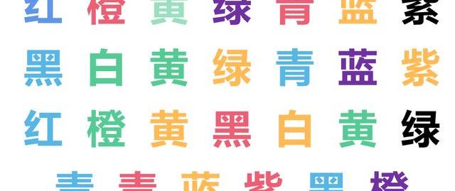 用不同的彩色筆隨機寫下紅、橙、黃、綠、青、藍、紫、黑、白這些字,注意讓彩色筆的顏色和文字的顏色意思不同,比如“紅”可以用藍色筆寫,“綠”用黃色的筆寫等。然后讓小朋友讀出這些字的顏色。