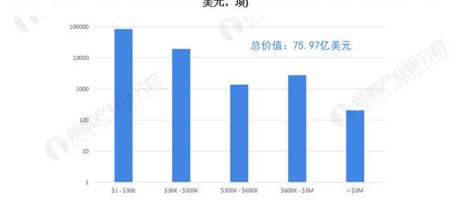 (4)專利市場價值:總價值高達數十億美元,3萬美元以下專利數量較多