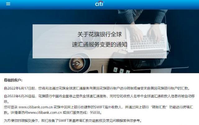 5月16日,花旗銀行官網發布《關于花旗銀行全球速匯通服務變更的通知》稱: