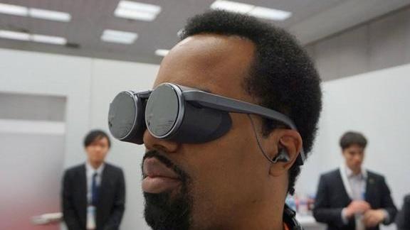 光會從屏幕穿過偏振片,再進入到第二個透鏡,然后再回到第一個透鏡,然后再穿過第二個透鏡進入眼睛里面,也就是它會走Z字形,那就把原來十厘米的厚度縮短到三厘米的厚度,像個太陽鏡一樣,但雖然實際上比太陽鏡還厚。