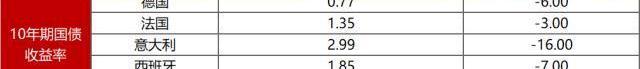 8月1日歐市尾盤,受歐元區制造業PMI疲弱、德國經濟數據不佳拖累,主要歐洲經濟體10年期國債收益率普遍下行。其中,德國10年期國債收益率報收0.77%,大幅下行7bp,法國、意大利、西班牙、英國10國債收益率分別下行3bp、16bp、7bp、7bp。