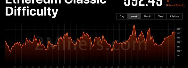 盡管低至562.49,但2Miners.com報告稱,截至8月31日,ETC的網絡難度已增加到592.49。