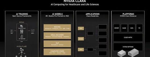自從2018年推出專門針對醫療場景的NVIDIAClara平臺以來,NVIDIA近年來一直在不斷對其進行優化和拓展,以完善其在醫療健康的布局。最初,NVIDIAClara僅是為影像學AI研究者提供一個醫學影像的軟件開發工具,以標準化影像數據,并提升AI訓練速度。