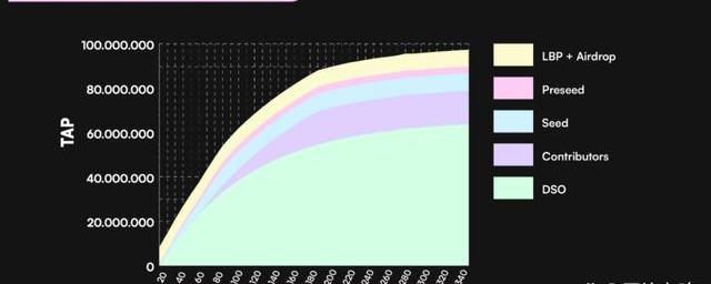 TAP是可流動交易的代幣,只能通過DAO股票期權計劃或在公開市場上獲得,最大供應量為1億枚,并通過以下方式分配: