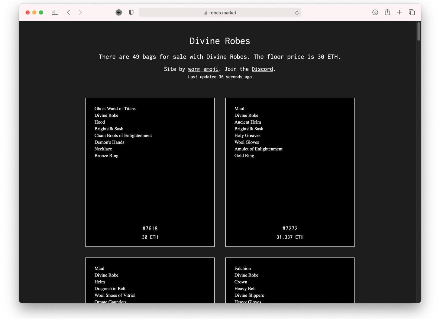 Robes.market可跟蹤裝有神圣法袍的Loot袋子。
