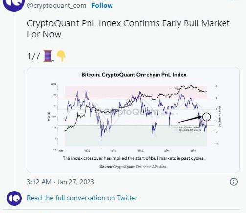 在其他地方,另一家加密分析公司CryptoQuant跟蹤的另一個市場盈利能力指標自2019年以來首次發出明確的買入信號。