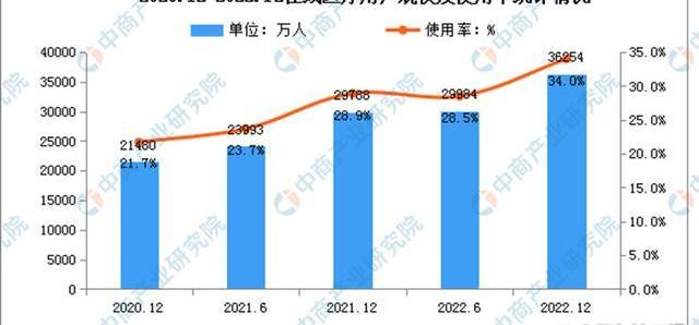 2020.12-2022.12在線醫療用戶規模及使用率統計情況,來源:中商產業研究院