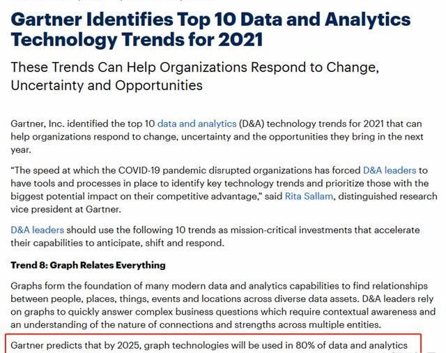 用Gartner在《2021年十大數據和分析技術趨勢》報告中的預測來說,到2025年,也就是從現在開始到兩年后,圖技術就將會應用于80%的數據和分析創新。